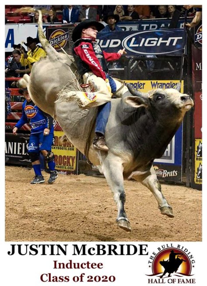 Justin Travis McBride (born August 7, 1979) is an American former professional bull rider. In his professional career, he competed on the Professional Bull Riders (PBR) tour. He is a two-time PBR World Champion (2005 and 2007), has a record 32 career wins, and was the first professional bull rider to earn more than $5 million in the course of his career. McBride is to be inducted into the Class of 2020 in the Bull Riding Hall of Fame in August.